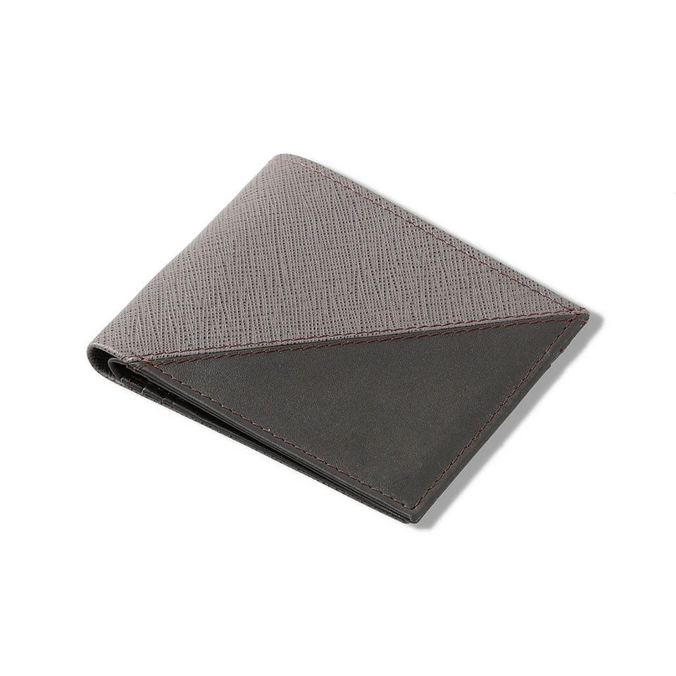 Carteras multifuncionales cortas de alta calidad RFID Split Grey Bifold cuero genuino de lujo hombres logotipo personalizado tarjetero al por mayor