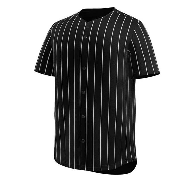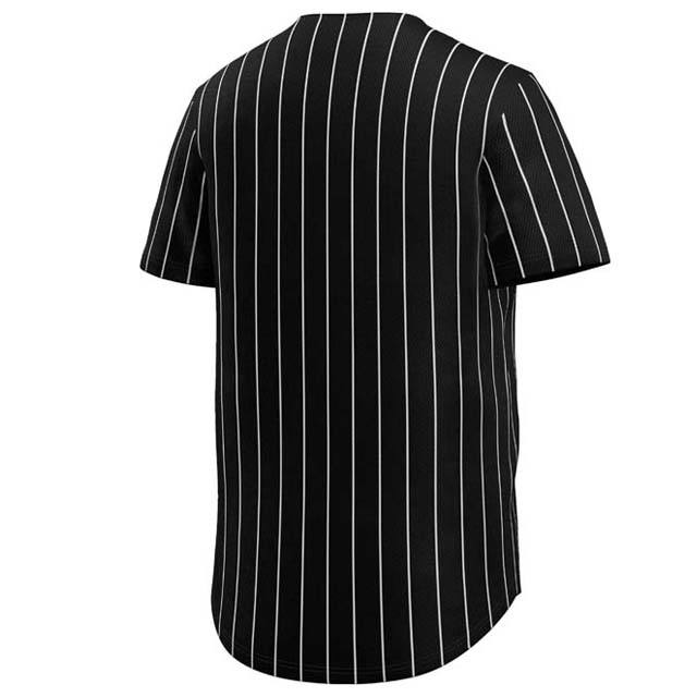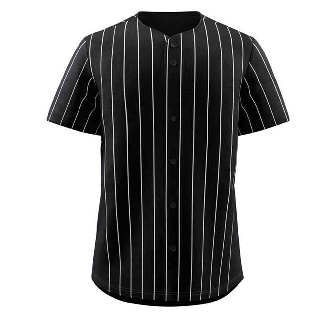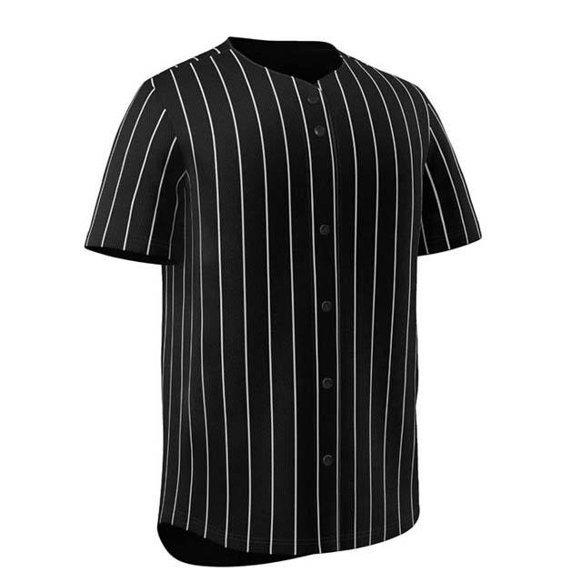 Camisa de béisbol de manga corta de alta calidad para hombres Diseño a rayas Impresión por sublimación Poliéster Cuello en V Botón Abajo Jersey Adulto