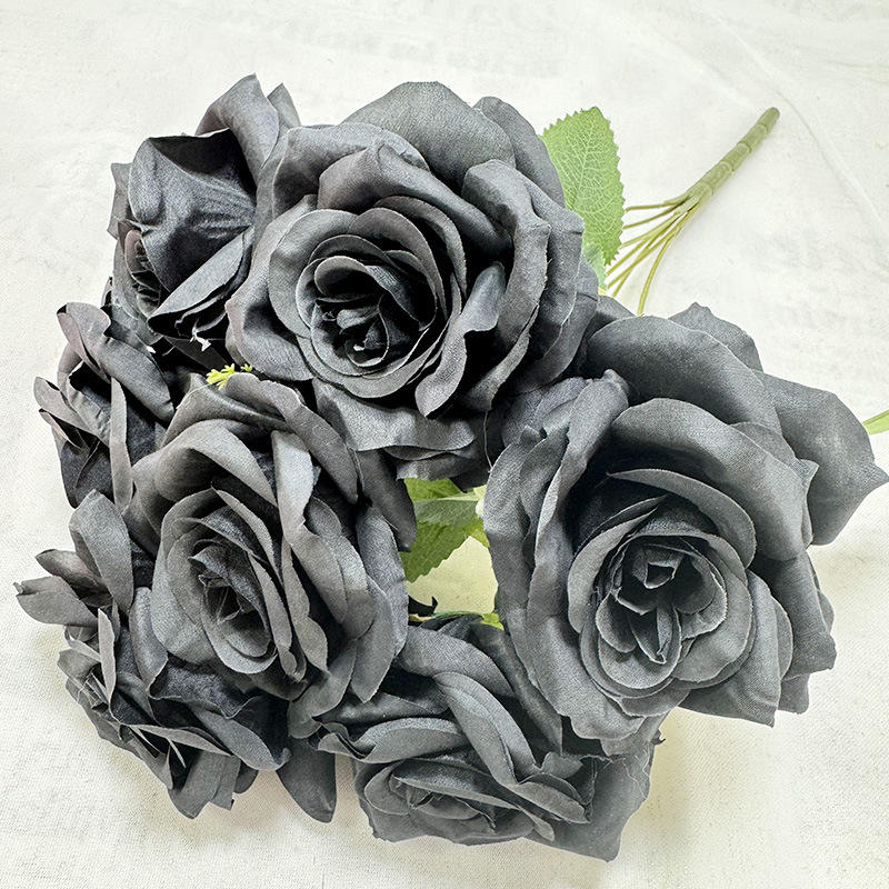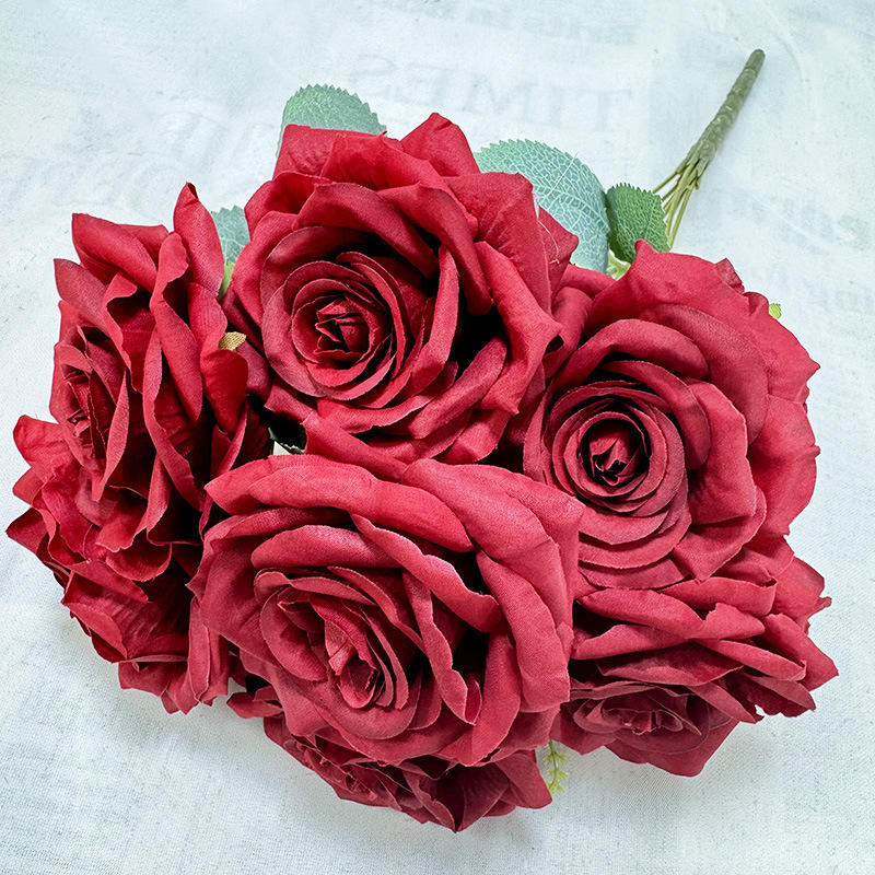 Ramo de Rosas de Seda de Alta Calidad, Flores de Seda Hechas a Mano, Rosa de Cuerno Grande de 7 Cabezas para Regalo de Boda, Decoración de Mesa, Estudio de Bodas