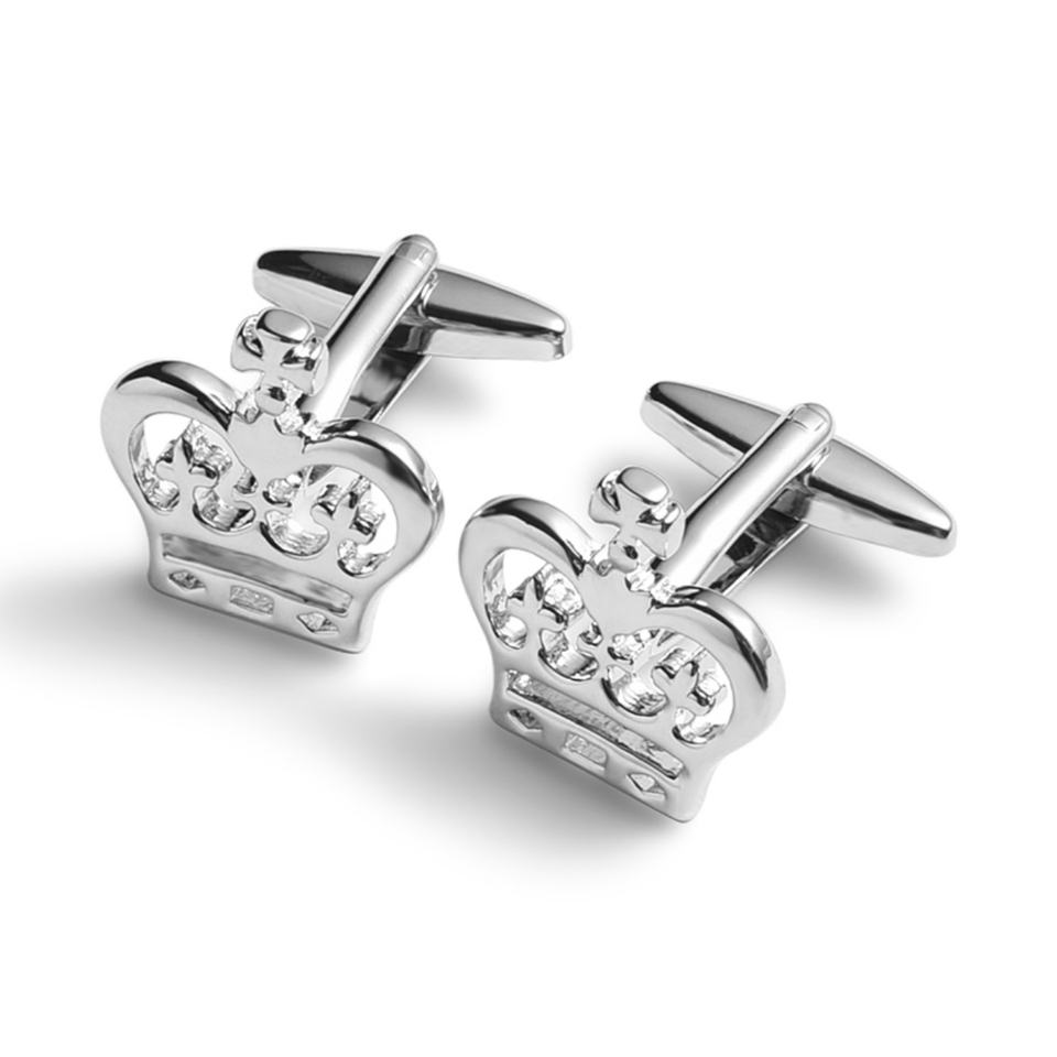 Mancuernillas de Alta Calidad con Forma de Corona de Manzana en Color Plateado con Diamantes, Regalo para Hombre