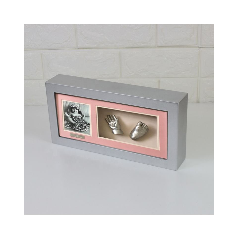 Marco de Fotos de Madera de Alta Calidad Color Plata para el Primer Año del Bebé, Regalo DIY, Molde para Manos y Pies de Bebé, Caja de Sombra
