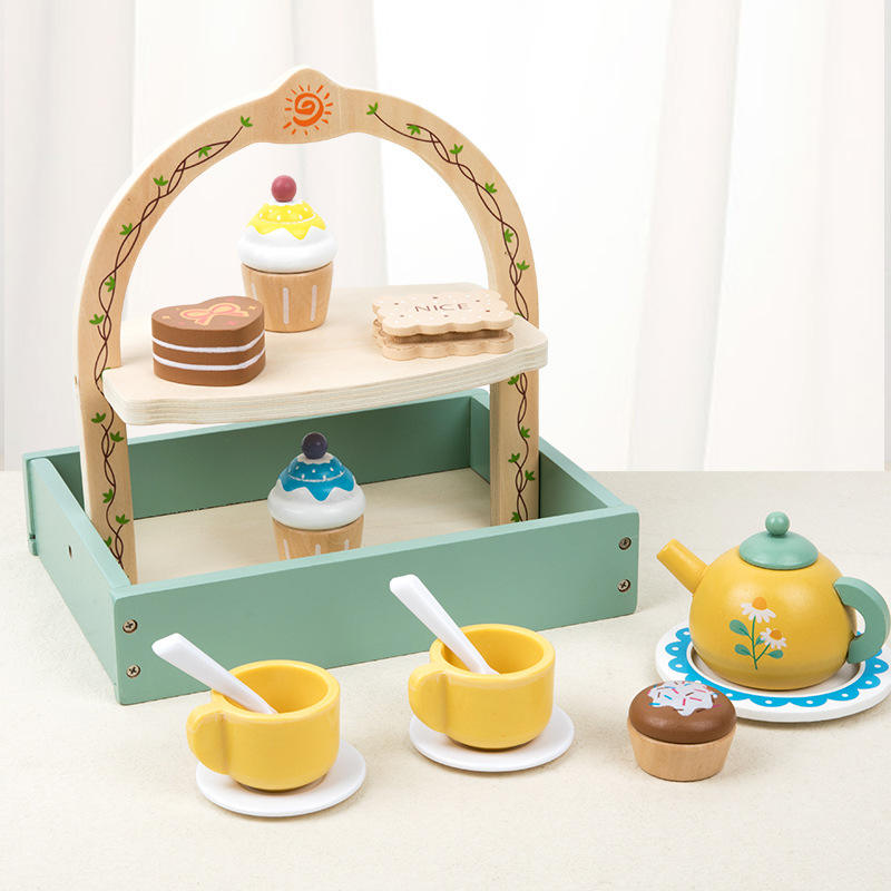 Juego de Té de Simulación de Alta Calidad, Juguete de Imitación para la Interacción entre Padres e Hijos, Pasteles de Madera, Postres, Galletas, Juguete de Cocina
