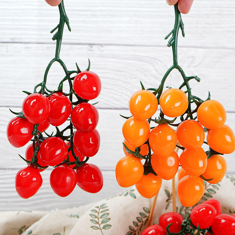 Tomates Cherry Artificiales de Alta Calidad para Decoración del Hogar, Accesorios Realistas, Simulación de Fruta