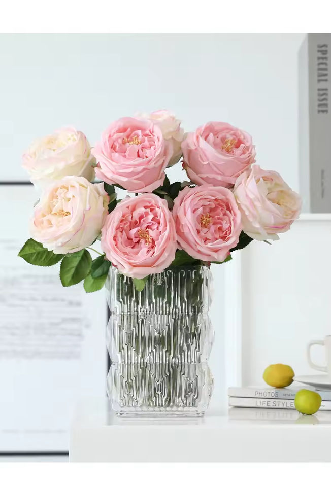 Rosa Artificial de Alta Calidad, Tacto Real, Látex, Color Blanco y Rosa, Tipo David Austin, para Decoración de Bodas y Fiestas