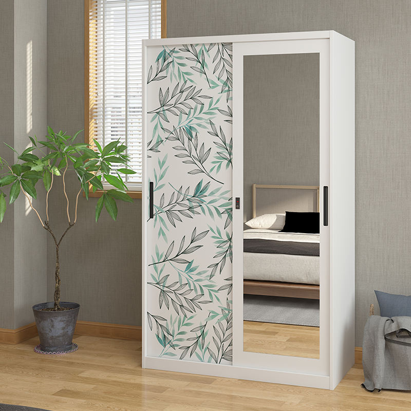 Armario de Acero Corredizo de Alta Calidad con Espejo, Mueble de Acero con Impresión de Patrones Personalizados para Dormitorio, Directo de Fábrica