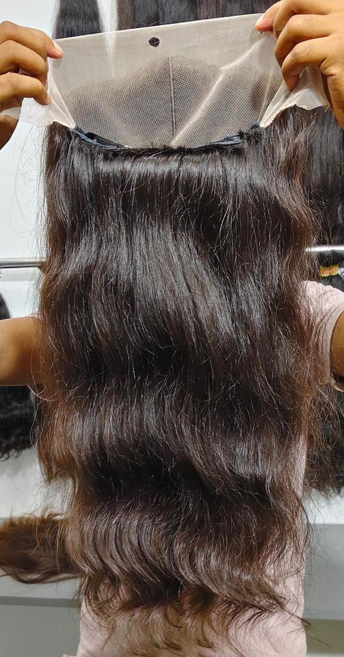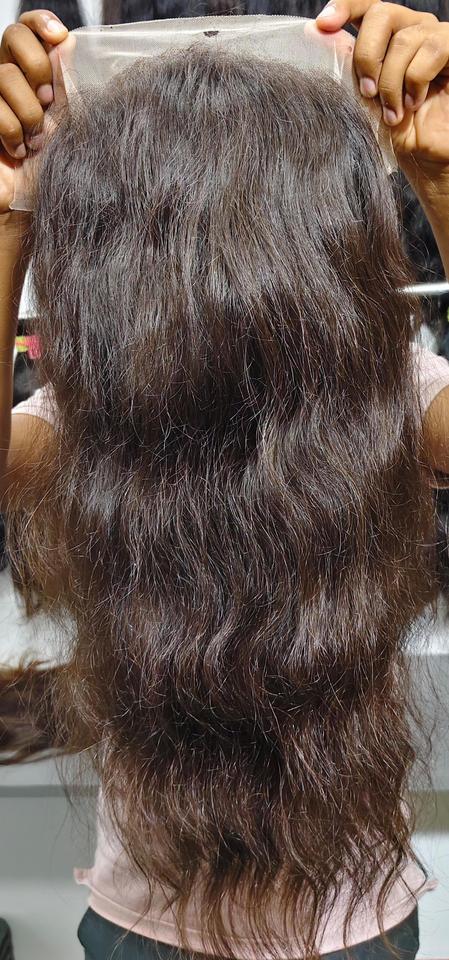Peluca de pelo Remy suave de alta calidad, trama cruda sin procesar, templo indio, ONDA DE AGUA, Natural onda suelta, peluca de templo indio de alta calidad