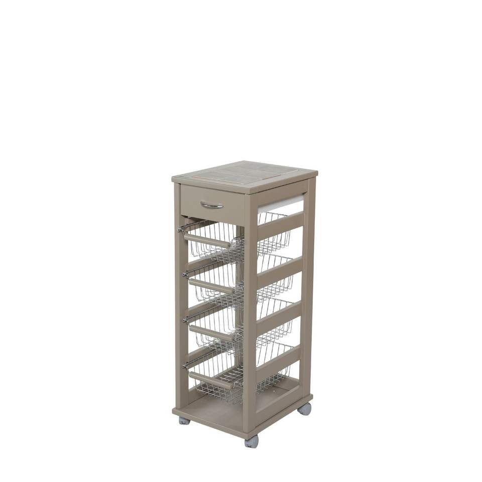Carrito Utilitario MASLEGNO de Madera de Haya Sólida de Alta Calidad, Cesta de Hierro, Ruedas/Asas de Plástico, Diseño Moderno para una Vida con Ahorro de Espacio