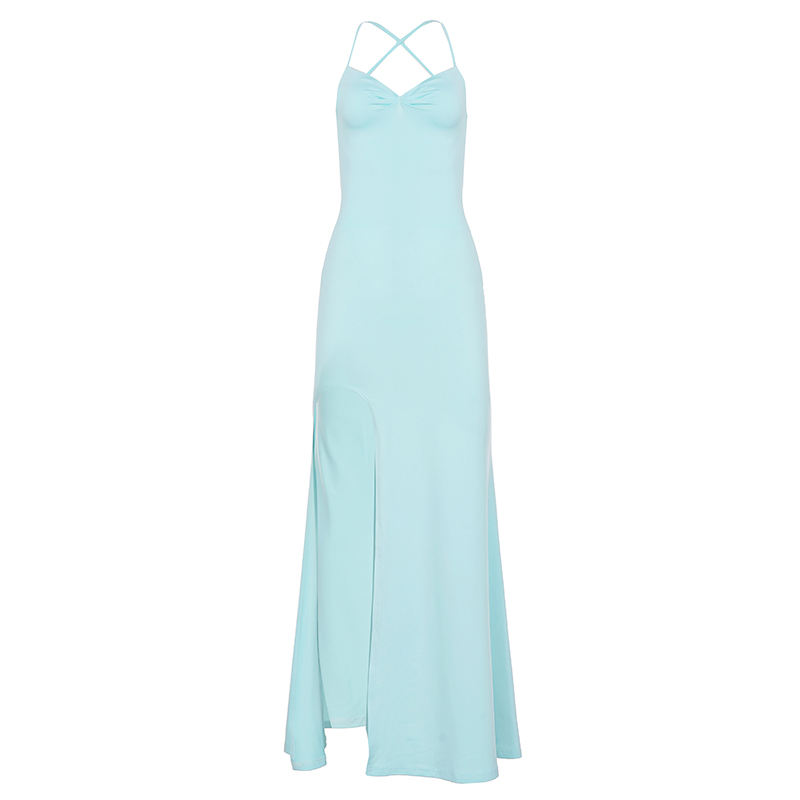 Vestido de punto de alta calidad hasta el suelo con cuello en V, patchwork, sin espalda, con detalle de lazo, ecológico, cintura natural, transpirable