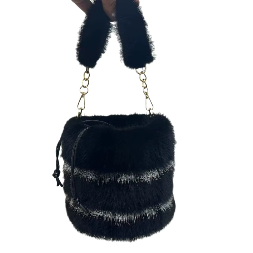 Bolsos de hombro de cubo de mujer de Color sólido de alta calidad, bolso de mano peludo para mujer, piel sintética de invierno
