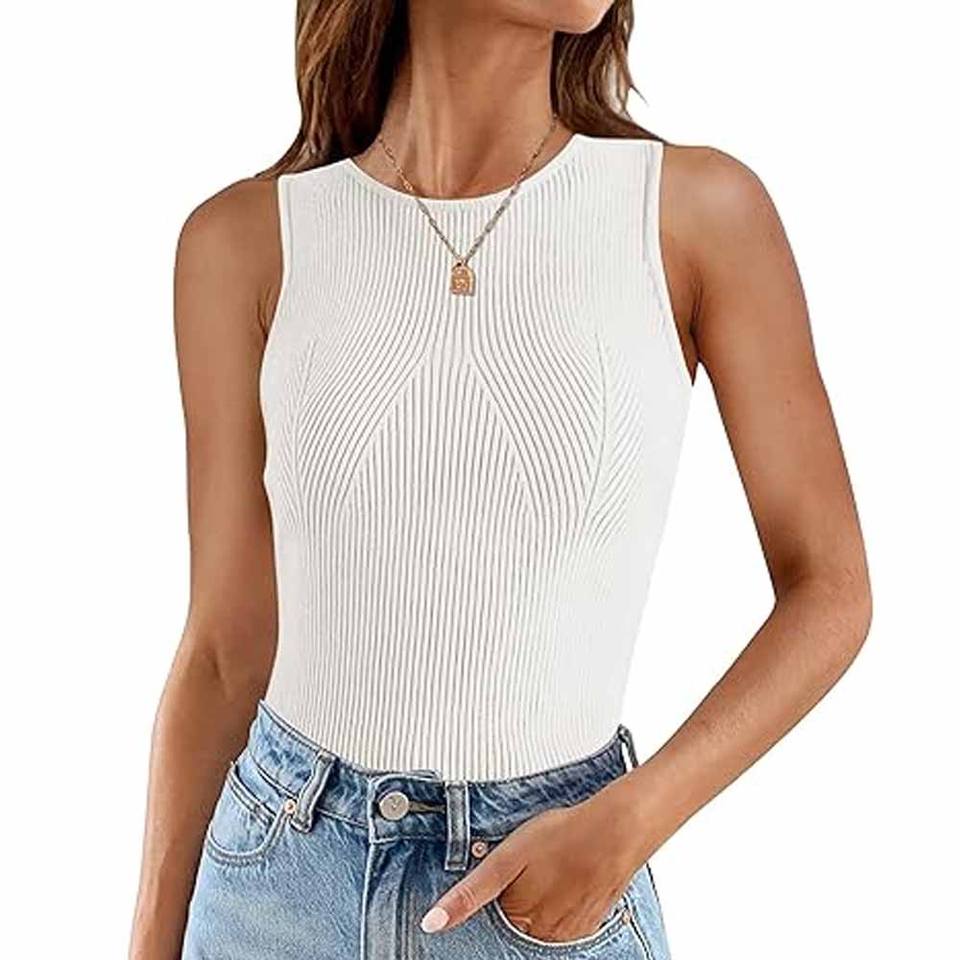 Camiseta sin mangas sólida de alta calidad, camiseta sin mangas de punto elástico sin costuras, camiseta sin mangas informal para mujer hecha por Dressports