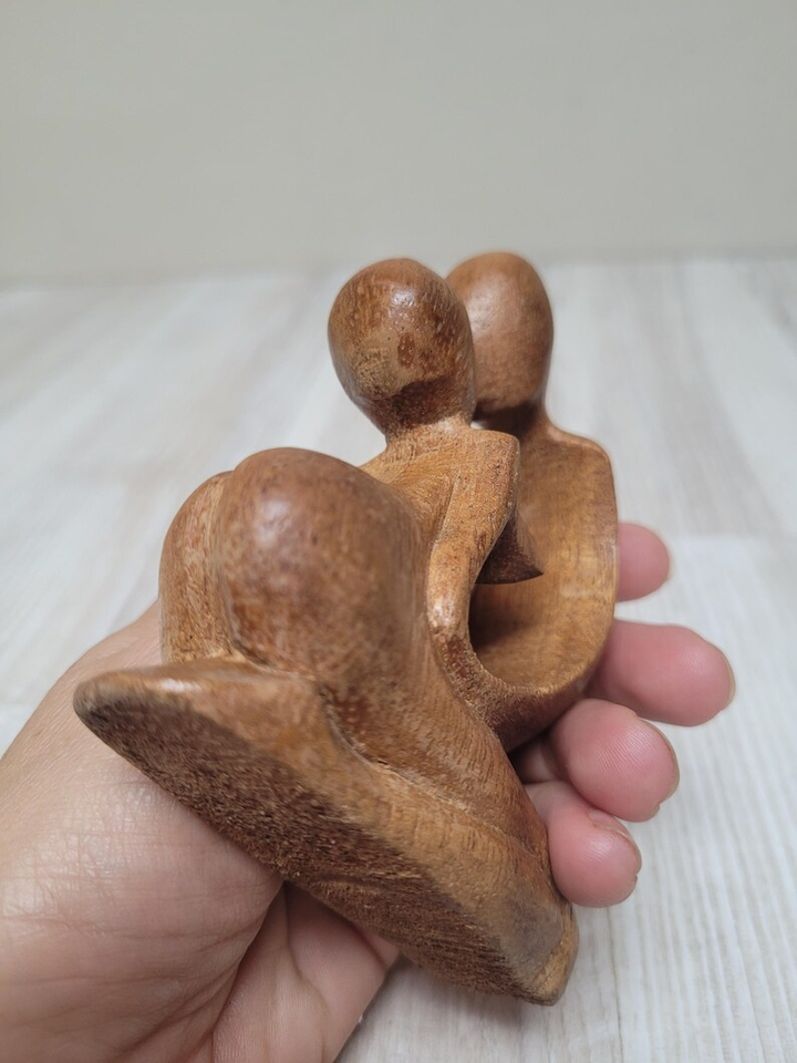 Estatua de Amantes Art Deco Hecha a Mano en Madera Maciza de Alta Calidad, Ecológica, Figura Abstracta de Pareja Romántica, Decoración Romántica para San Valentín