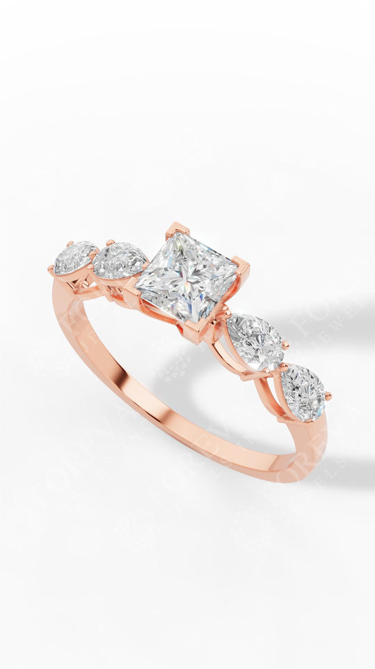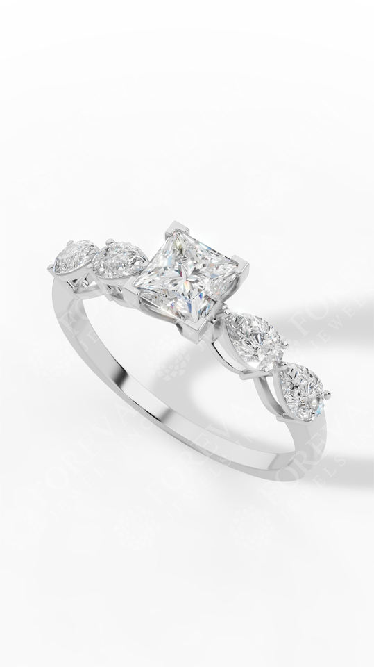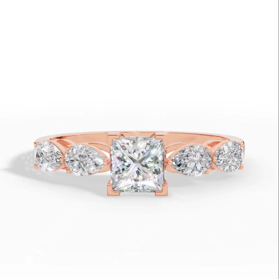 Anillo de Diamantes Cultivados en Laboratorio de Alta Calidad con Corte Princesa y Pera, Multicorte, Oro de 18K, Venta al Por Mayor, Fabricante de Joyería Fina OEM