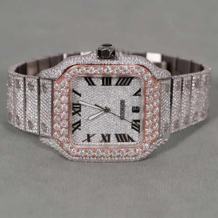 Esfera cuadrada de oro rosa de alta calidad, reloj de moissanita de diamantes de lujo personalizado, completamente helado, Unisex, elegante para cada ocasión