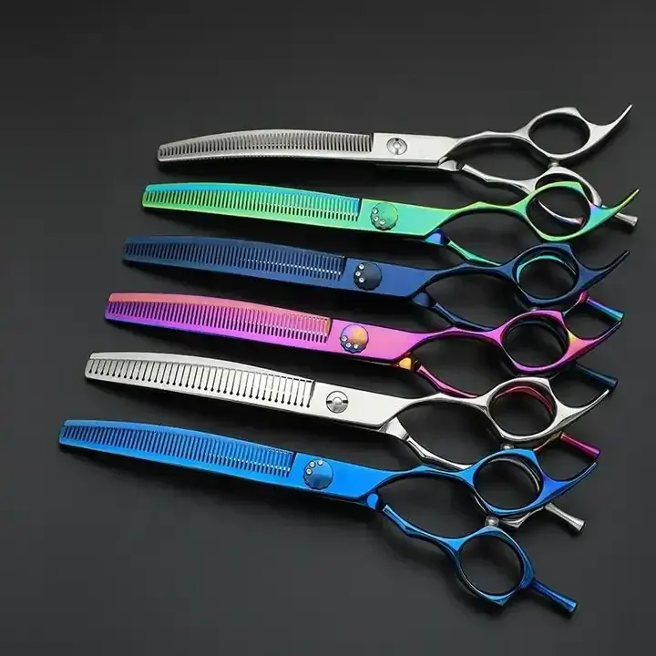 Tijeras de adelgazamiento personalizadas de acero inoxidable de alta calidad, herramienta de peinado OEM y ODM con máquina de impresión de logotipos alimentada por máquina