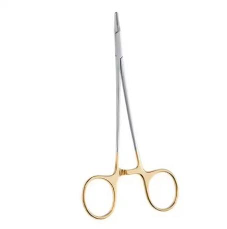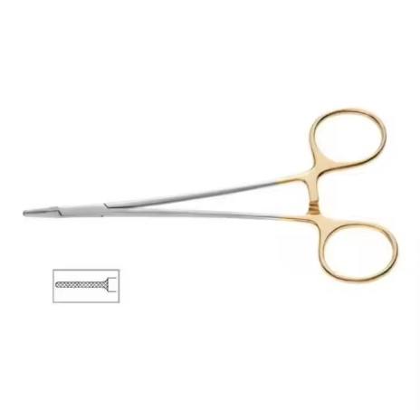 Pinzas Porta Agujas Derf de Acero Inoxidable de Alta Calidad, 6.5 Pulgadas, Semi Doradas, Instrumentos Quirúrgicos y de Laboratorio para Sujetar Agujas