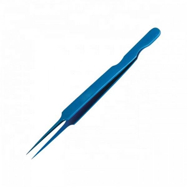 Pinzas de extensión de pestañas de acero inoxidable de alta calidad, puntas de volumen puntiagudas recubiertas de azul de Plasma recto, aplicador de etiqueta privada