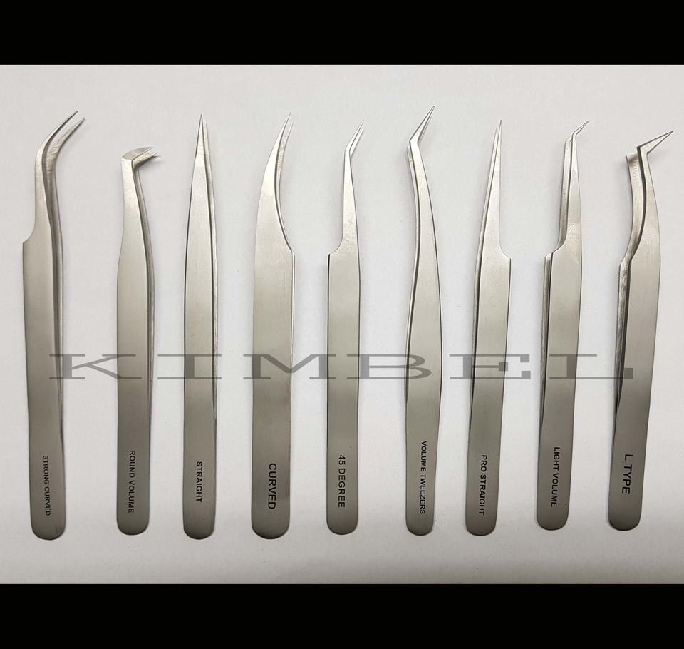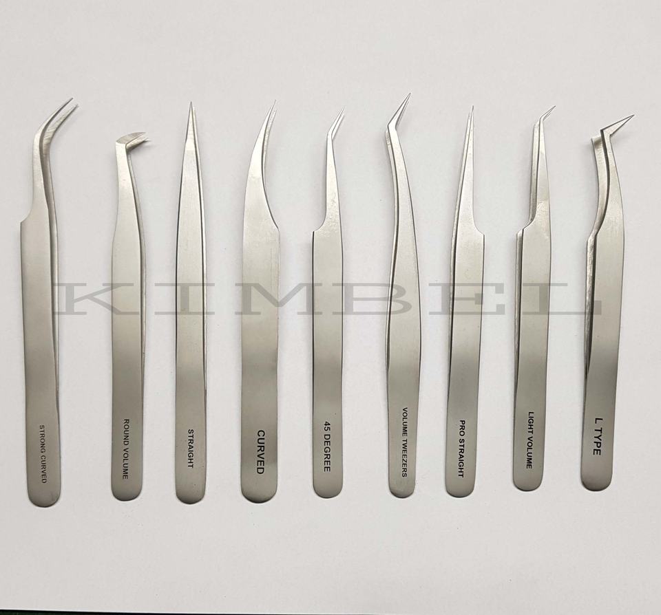 Juego completo de acero inoxidable de alta calidad, pinzas para extensión de pestañas con acabado de arena y agua, pinzas profesionales para pestañas, cantidad a granel