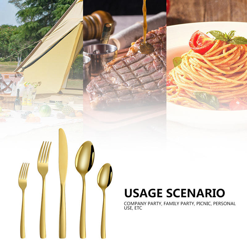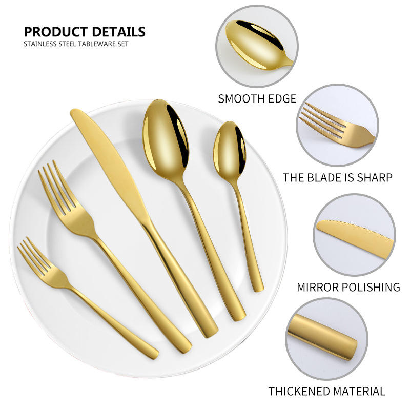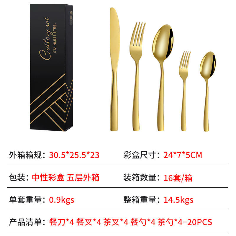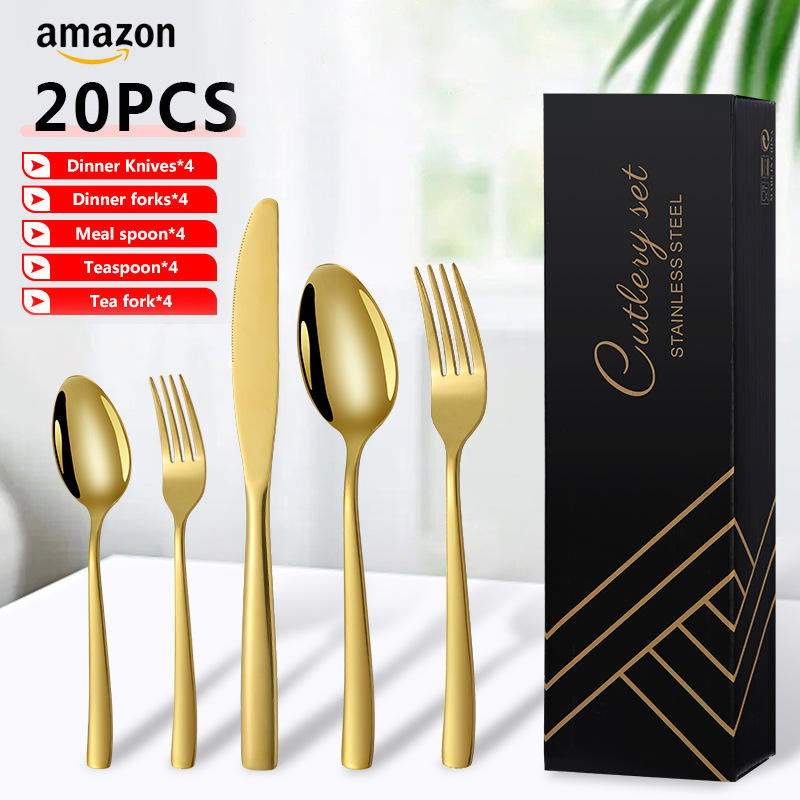 Juego de Cubiertos de Acero Inoxidable de Alta Calidad, 20 Piezas, Color Dorado, Juego de Cuchillos, Tenedores y Cucharas para 4 Personas, Juego de Cubiertos para Cena