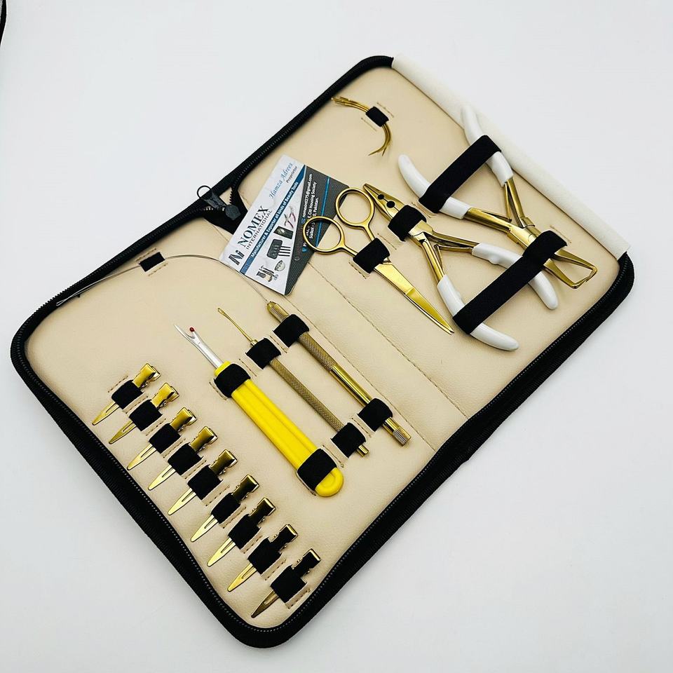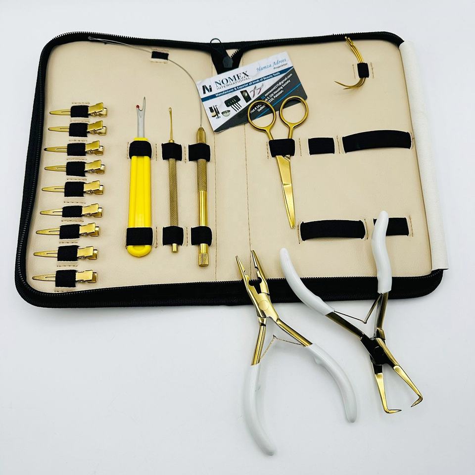 Kit de Herramientas para Extensiones de Cabello de Acero Inoxidable de Alta Calidad con Pinzas y Herramienta de Bucle Chapadas en Oro para el Cuidado y Peinado del Cabello