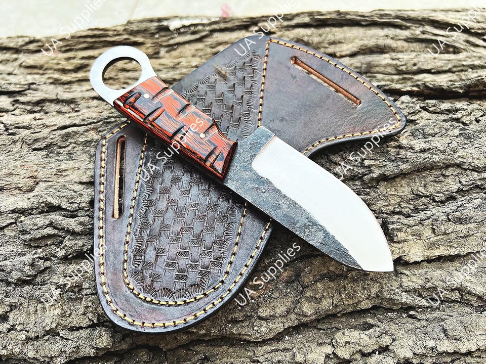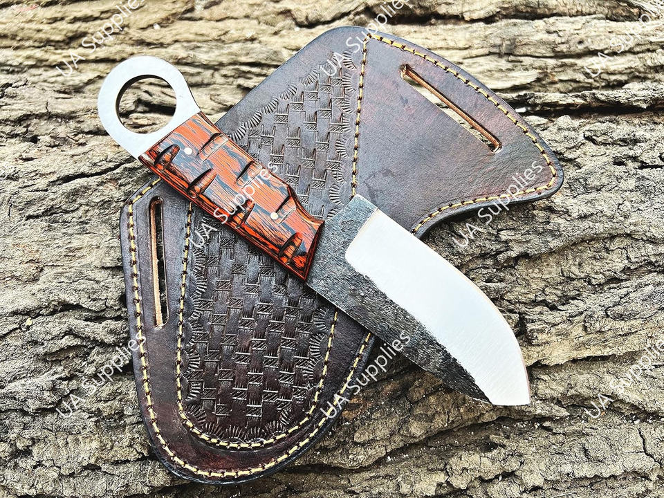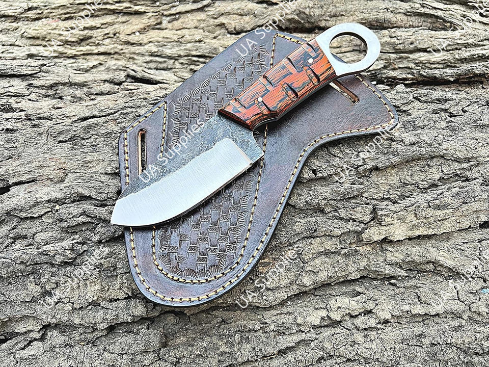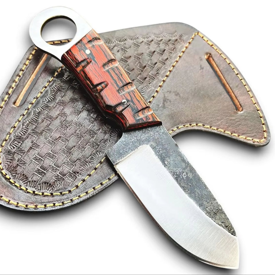 Cuchillo de Caza Fijo de Acero Inoxidable de Alta Calidad Hecho a Mano con Orificio para el Dedo, para Bushcraft y Camping al Aire Libre, Venta al por Mayor OEM, MOQ Bajo