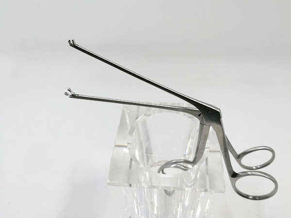 Mini Mcgee Micro oído fórceps curvado a izquierda, dentado X = 75mm