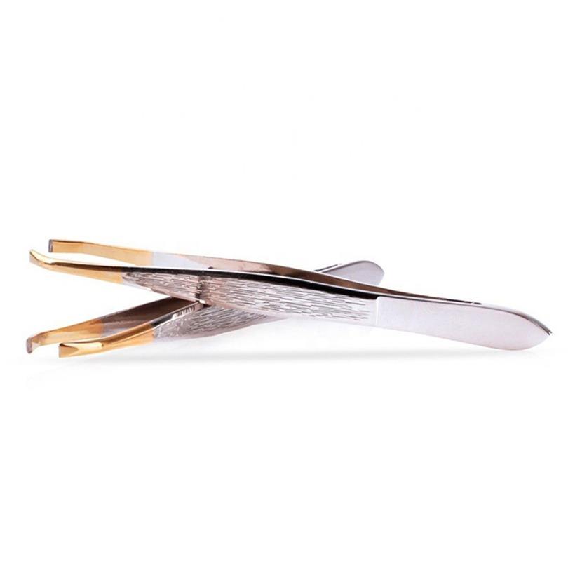 Pinzas de Punta inclinada de acero inoxidable de alta calidad para cejas y pestañas, pinzas duraderas ecológicas personalizables