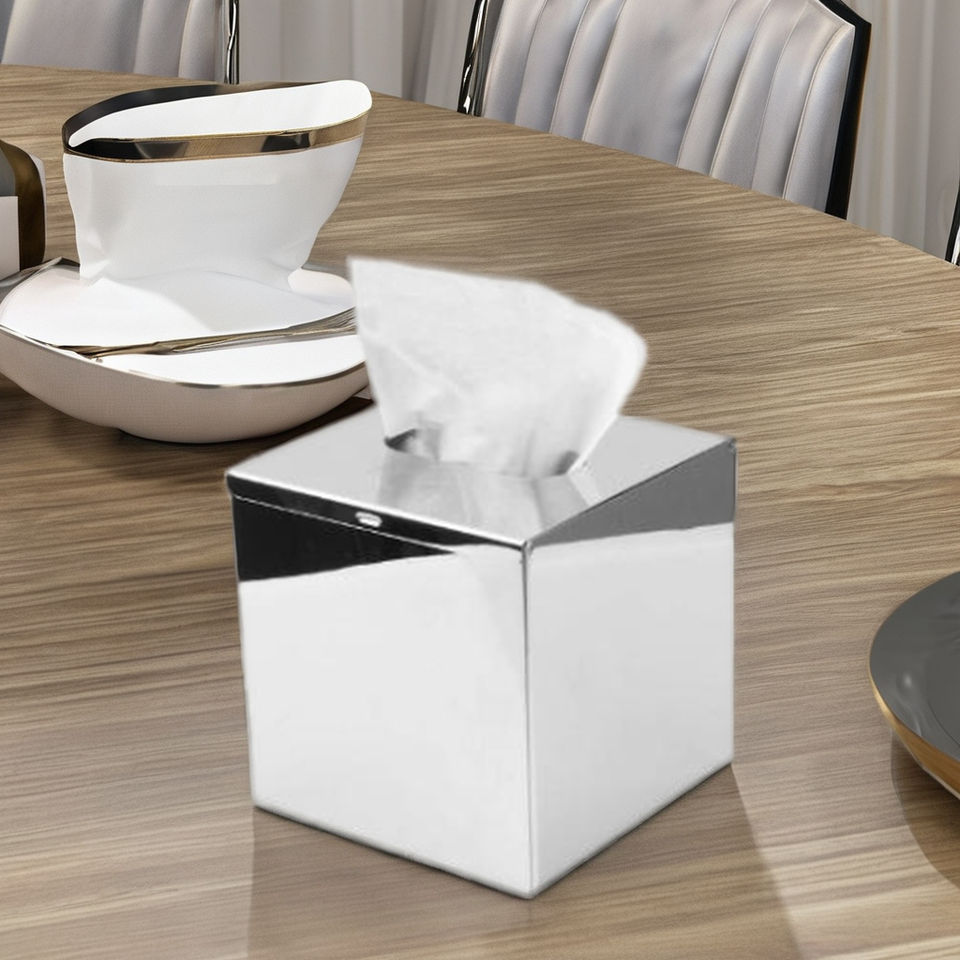 Caja de pañuelos de acero inoxidable de alta calidad para el hogar, Hotel, plata brillante, más vendida para mesa de comedor, restaurante, caja de pañuelos de Metal