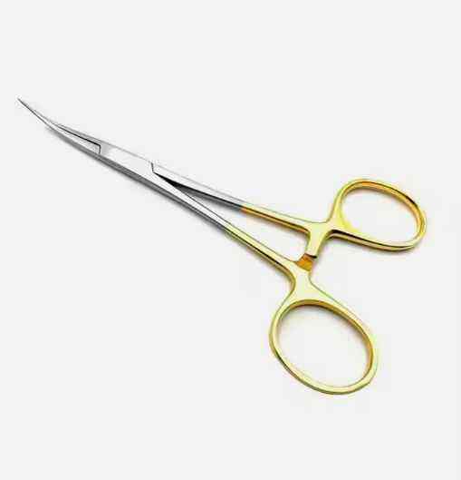 Fórceps para mosquitos quirúrgicos de acero inoxidable de alta calidad, instrumentos de vasectomía curvos con mango dorado y fuente de alimentación Manual