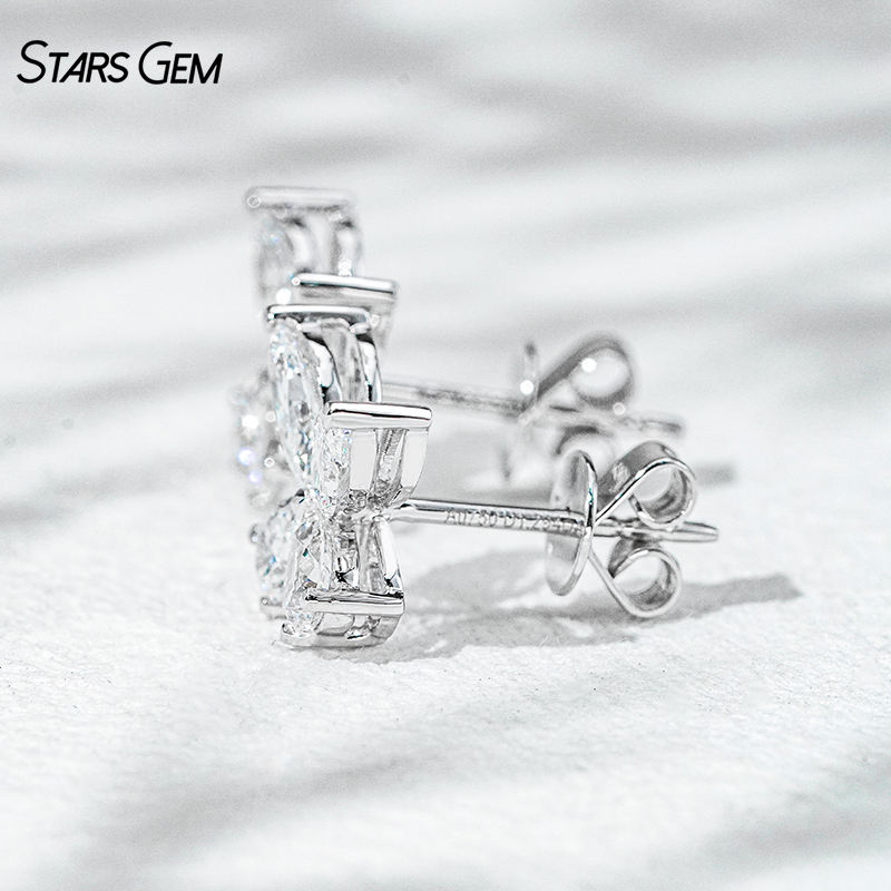 Pendientes de Oro Sólido de 18K con Diamante Cultivado en Laboratorio de Alta Calidad Starsgem, Corte Marquesa de Pera de 1.35ct, Diseño de Mariposa, Unisex, Modernos, IGI