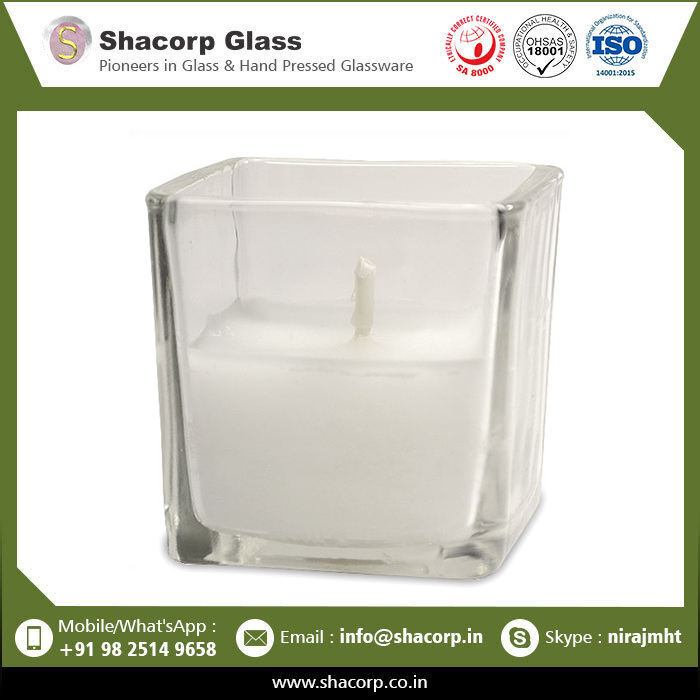 Vástago de alta calidad menos votivo de vidrio cuadrado al mejor precio de fabricación de la India