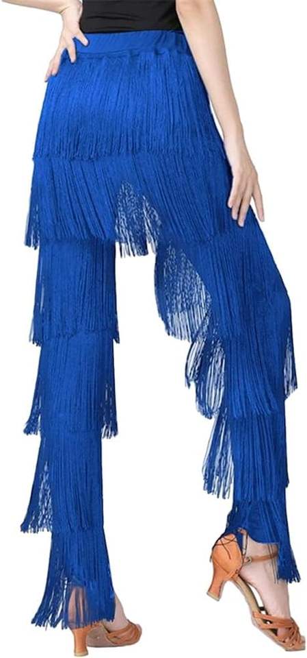 Pantalones de Baile Latino para Mujer, Estilo Urbano, de Alta Calidad, de Lona, con Flecos y Borlas, Elásticos en la Cintura, para Práctica y Actuación de Tango, Salsa y Baile de Salón