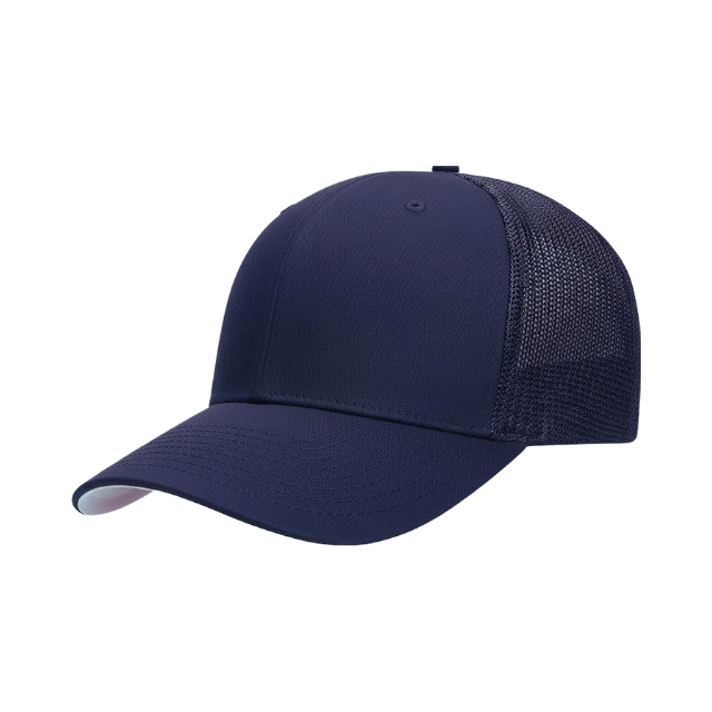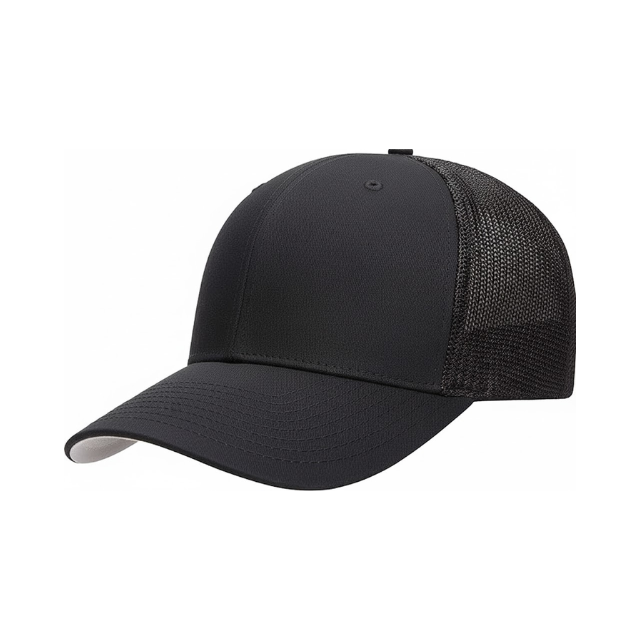Gorra de camionero lisa de 6 paneles estructurada de alta calidad, gorra deportiva elástica ajustada con logotipo personalizado curvado ligero de malla para correr informal