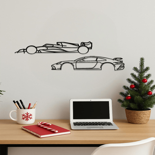 Esculturas de Pared de Autos de Carreras Elegantes y de Alta Calidad, Arte en Hierro Suspendido con Líneas Metálicas para Decoración del Hogar