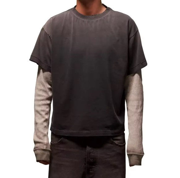 Camiseta de manga larga informal de gran tamaño con estampado de algodón pesado para hombre con logotipo personalizado de verano de alta calidad
