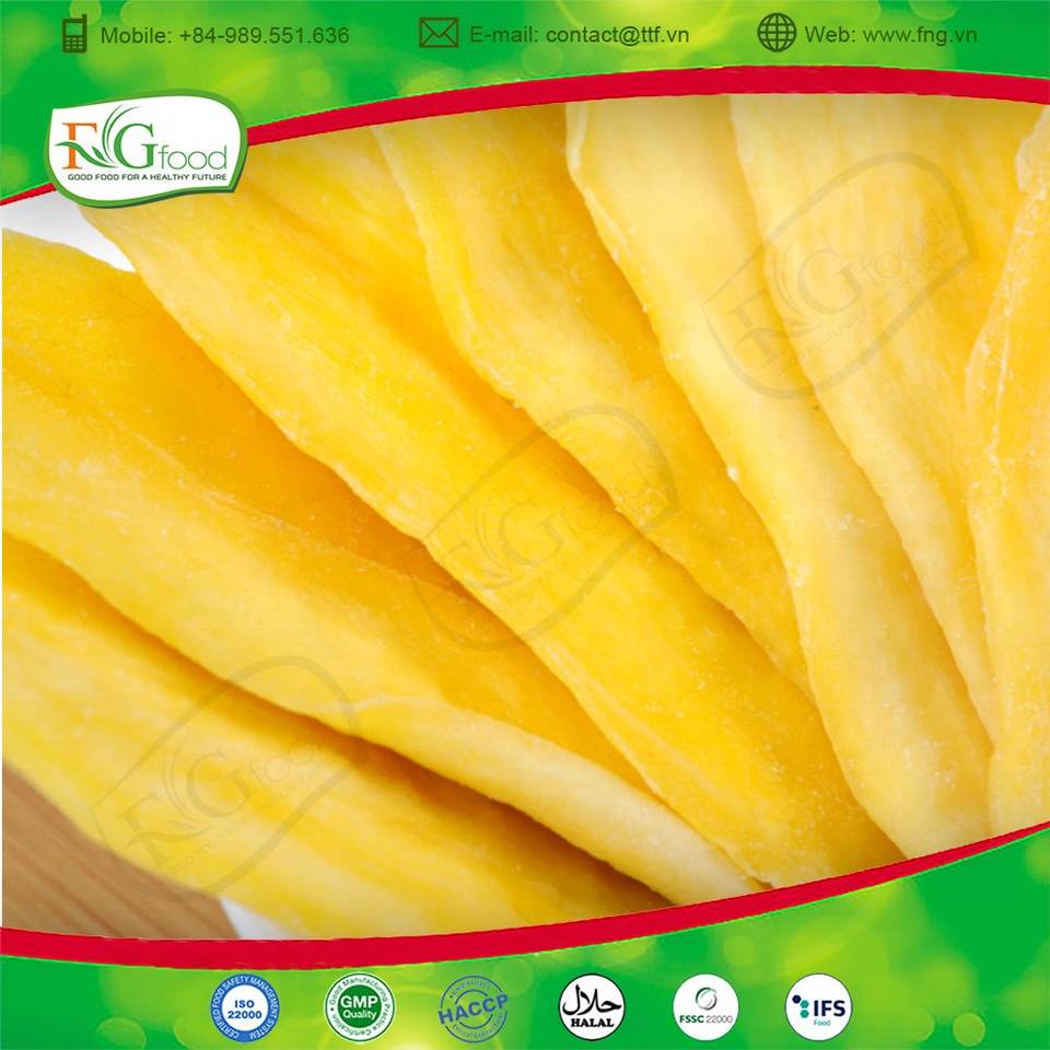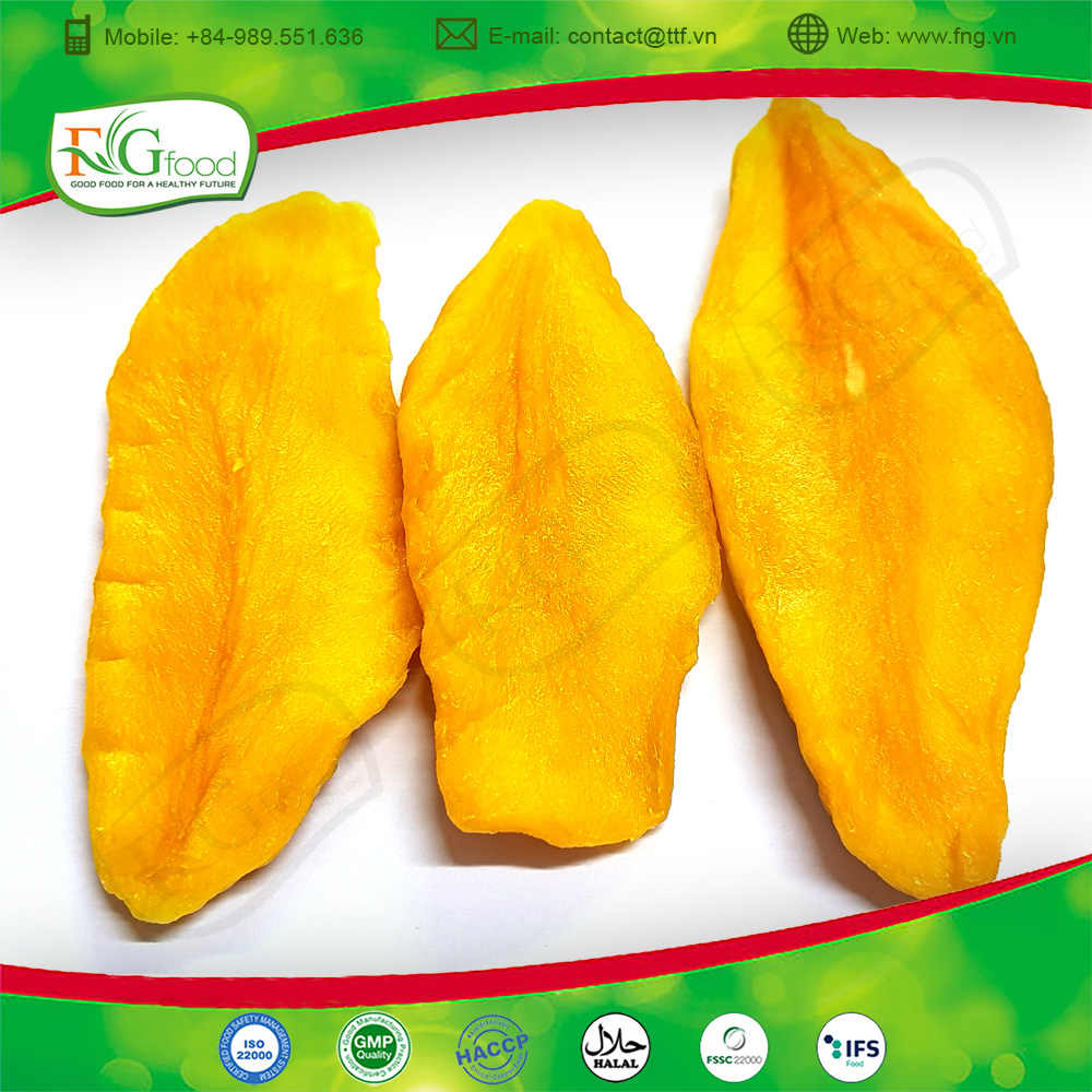 Mango seco dulce de alta calidad en rodajas y envasado al vacío con proceso de secado al sol