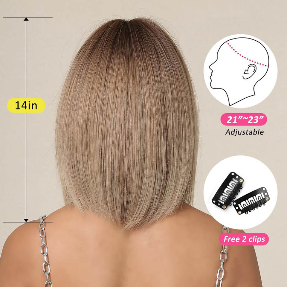 Peluca rubia sintética de alta calidad con raíces oscuras para mujer Peluca resistente al calor de estilo recto en capas Ombre Rubio ceniza