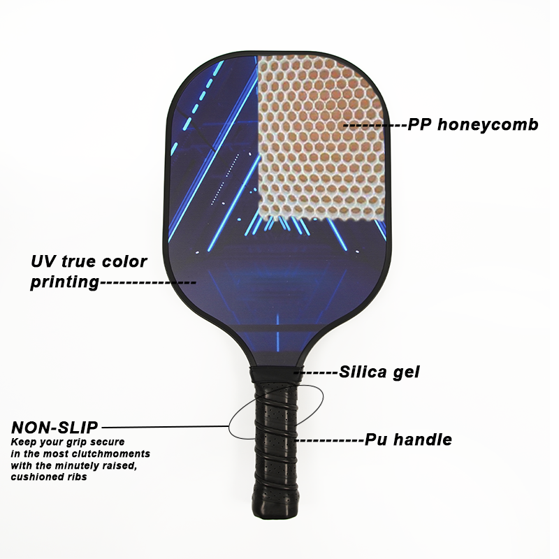 Placa de fibra de carbono, Graphit Pickleball con UV impreso, PU cuero GRI, Placa de fibra de carbono, Graphit Pickleball con UV impreso, PU cuero GRIMaterial