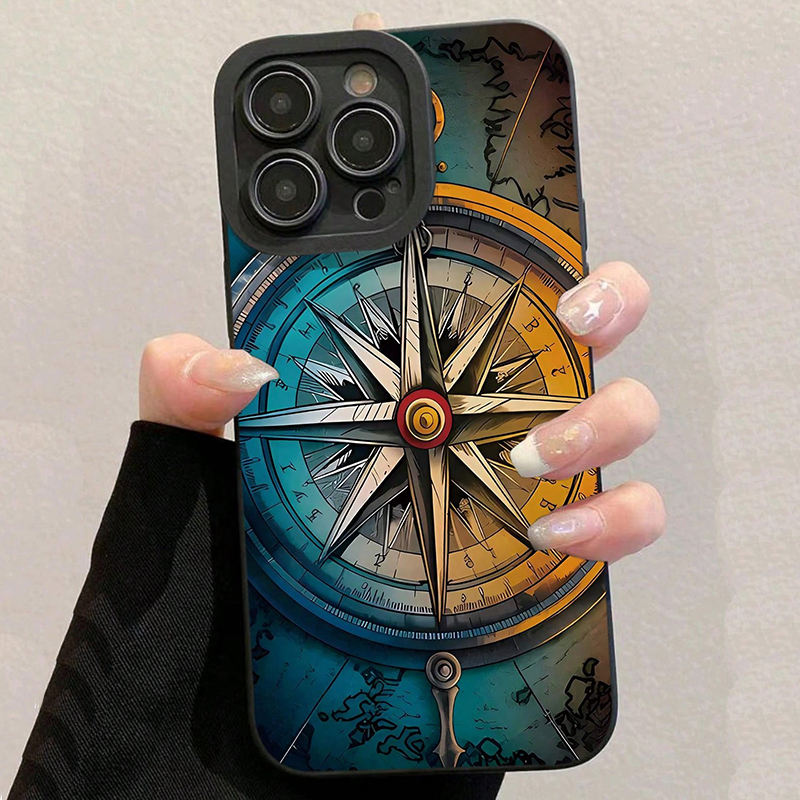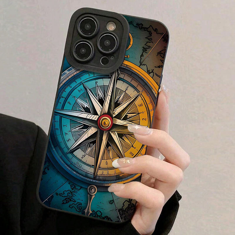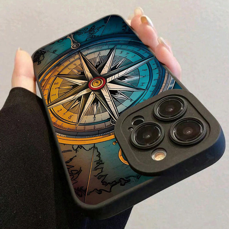 Funda de TPU de Alta Calidad a Prueba de Golpes con Patrón de Brújula y Tacto Suave para iPhone 17 16 Pro Max 14 13 12 11