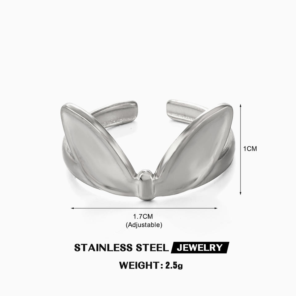 Anillo abierto con textura de alta calidad, Orejas de conejo, anillos geométricos encantadores traviesos, joyería de acero inoxidable de estilo étnico Hip Hop