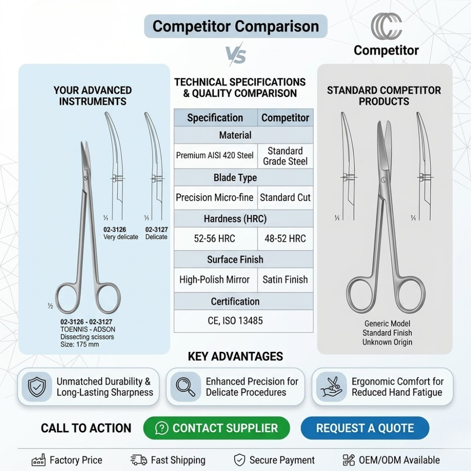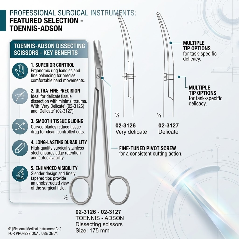 Tijeras de Disección Toennis-Adson de Alta Calidad, 175 mm, Acero Inoxidable, Tijeras Quirúrgicas con Puntas Curvas para Cirugía Plástica