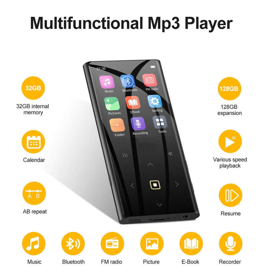 Reproductor MP3 Digital de Alta Calidad con Pantalla Táctil, Sonido sin Pérdidas, Reproductor de Música Portátil Multifunción con Radio FM y Grabadora de Voz