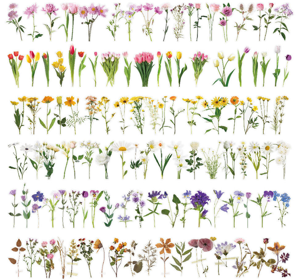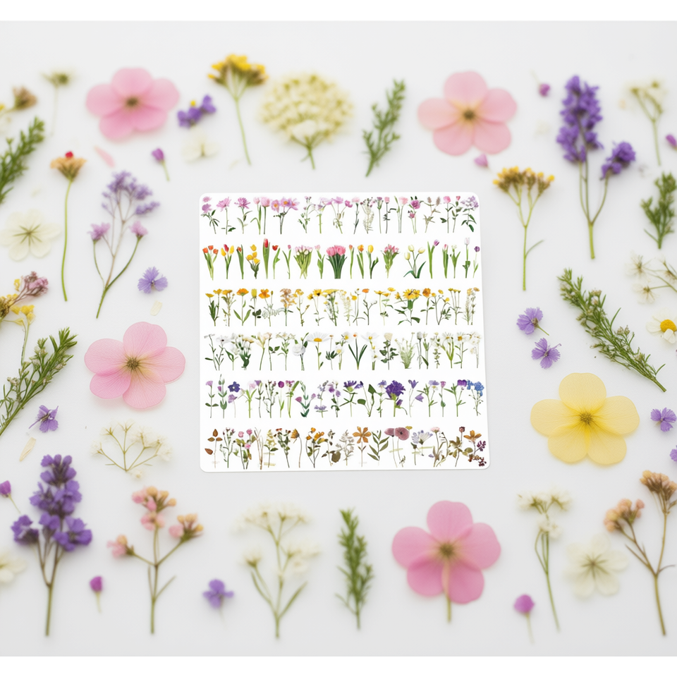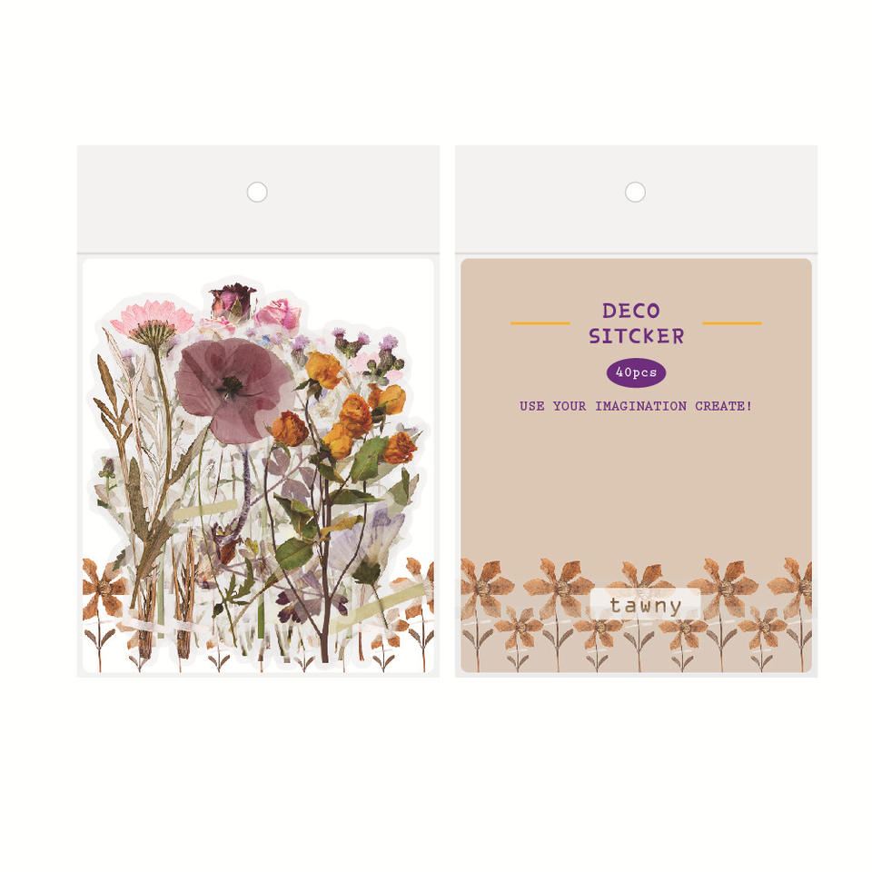 Pegatina de vinilo PET personalizada con diseño de flores artificiales, pegatina decorativa impresa con protección UV a prueba de agua para decoración del hogar y promoción