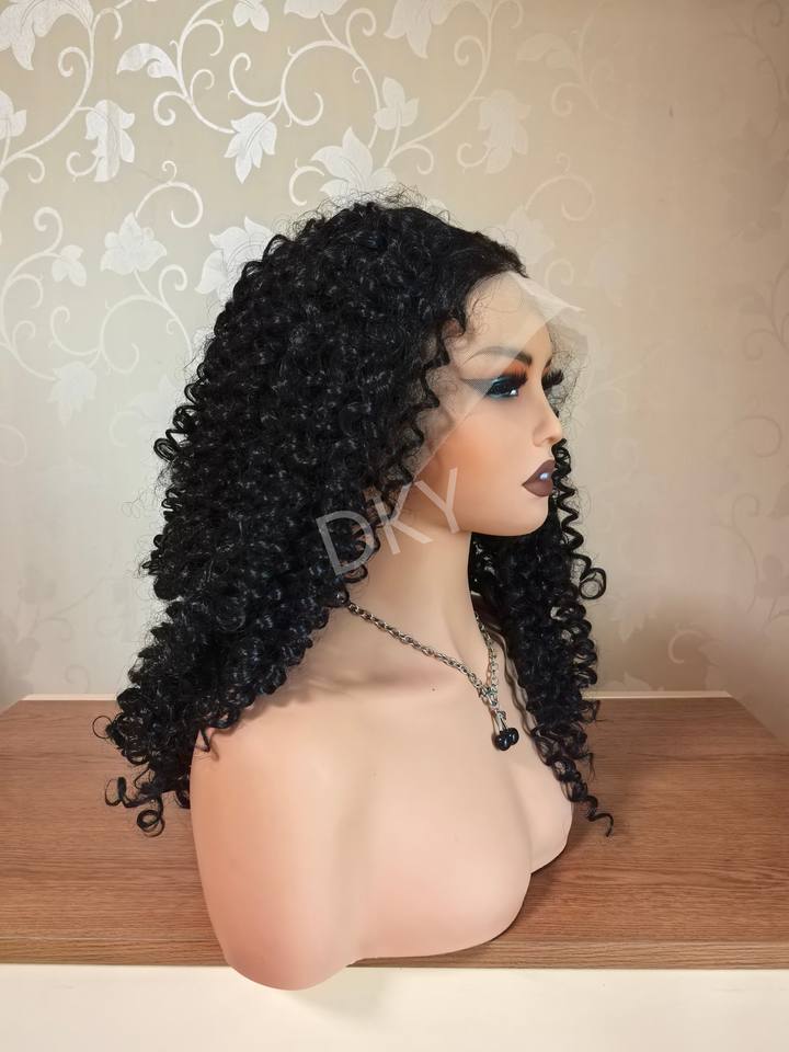 Pelucas de Encaje Frontal con Base de Seda Transparente de Alta Calidad, Ajustables, 13x4, 18 Pulgadas, Afro Rizado Negro, para Mujer, Venta al por Mayor, Resistentes a Altas Temperaturas
