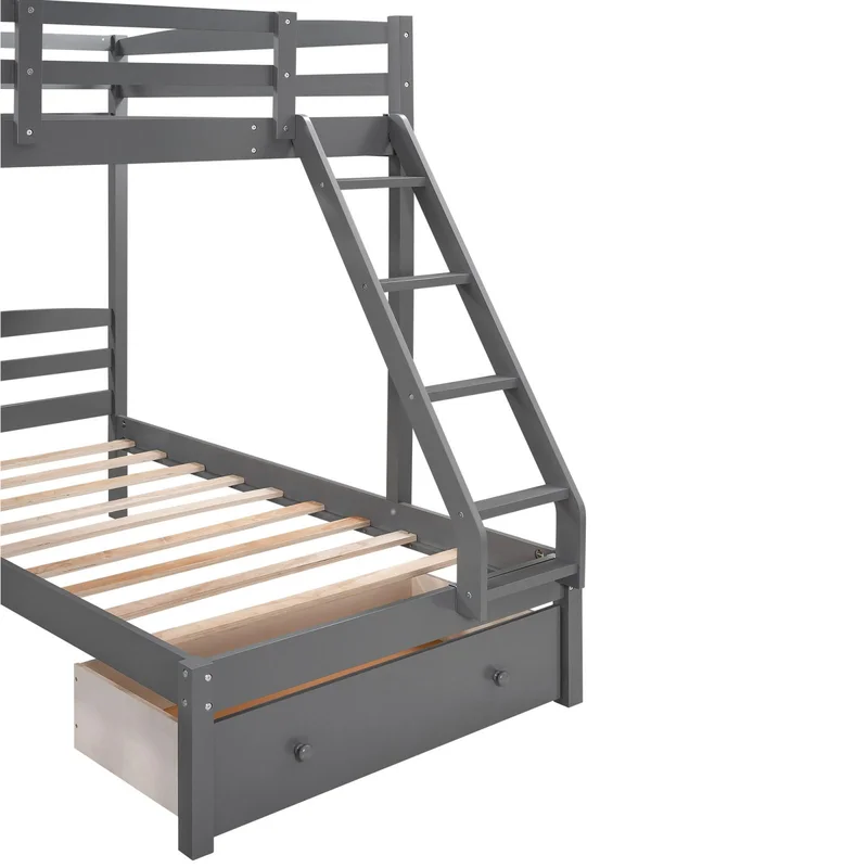 Litera triple de alta calidad en madera maciza Full over Twin con 3 cajones para uso en albergues y dormitorios