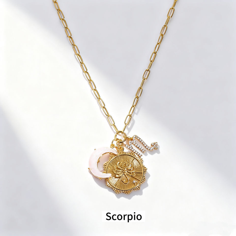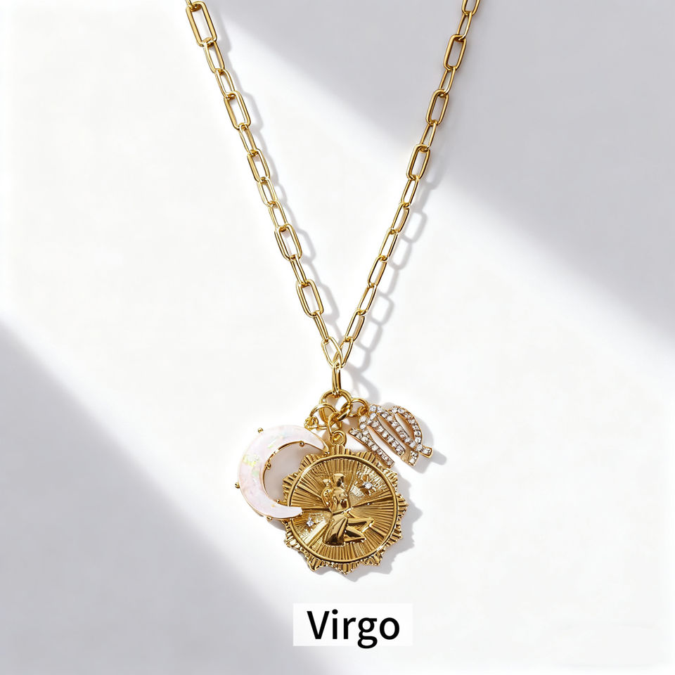 Alta calidad doce signos del zodiaco Retro Vintage runas Luna Nueva ópalo colgante collar sin decoloración Girasol ópalo joyería Collar