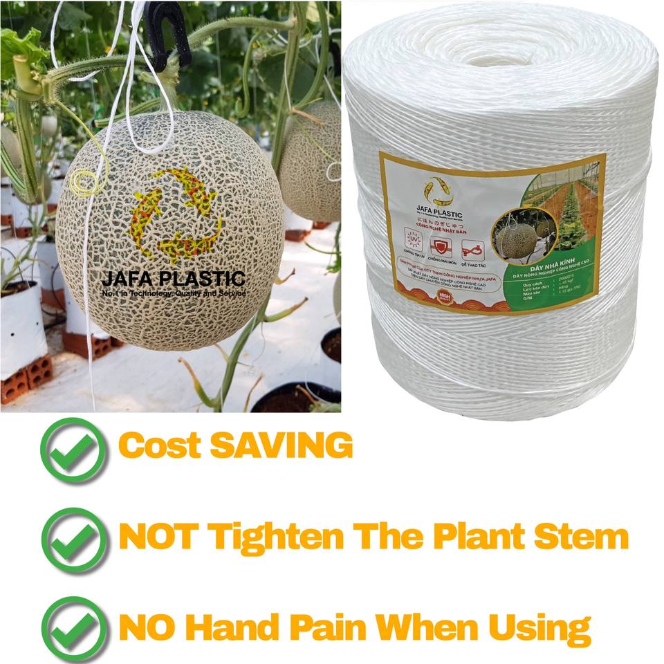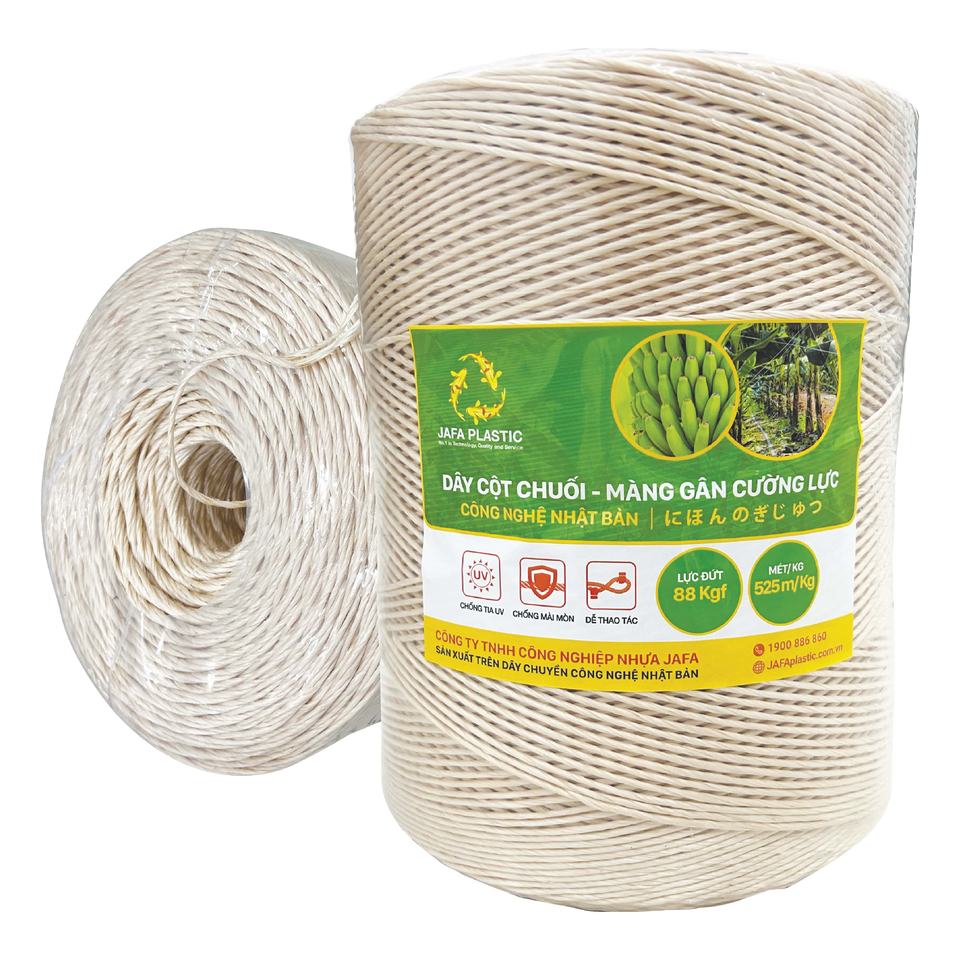 El cordel es suave y liso; fácil de manipular cuando se retira del núcleo interno, Baja elongación e impermeable; anti-hongo, Alta resistencia a la rotura; reutilizable, Aplicación: Ayuda a fortalecer el racimo de plátano y el tronco para no dañarse bajo mal tiempo, como tormentas y huracanesEspecificaciones