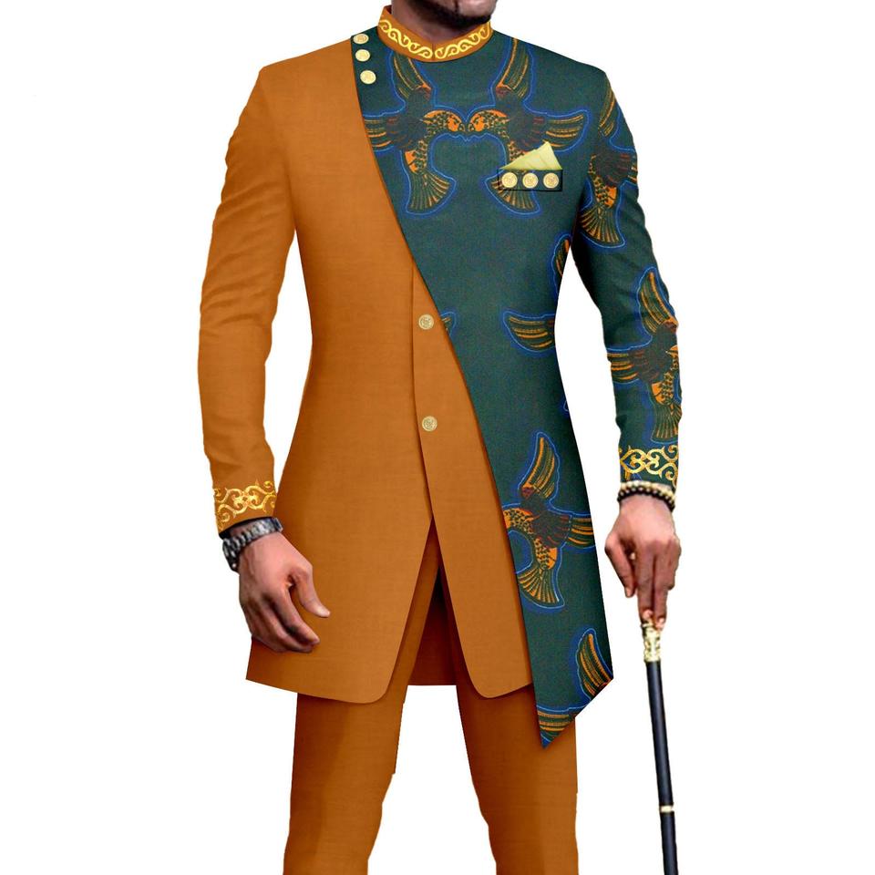 Conjunto de Dos Piezas de Alta Calidad para Hombre, Traje Africano, Trajes Largos de Boda para Hombre, Ropa de Novio 2025, Vestidos de Fiesta para Hombre