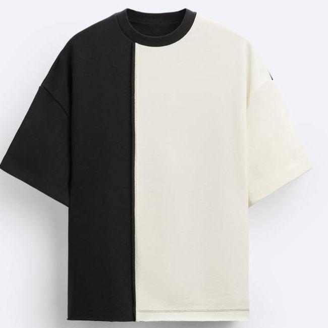Camiseta Oversize de Alta Calidad con Bloques de Color en Dos Tonos para Hombre, Hombros Caídos, Estilo Casual, Algodón, Naimat Abbas Industries