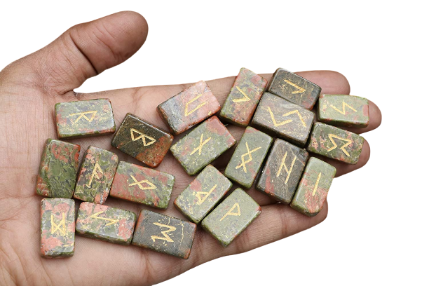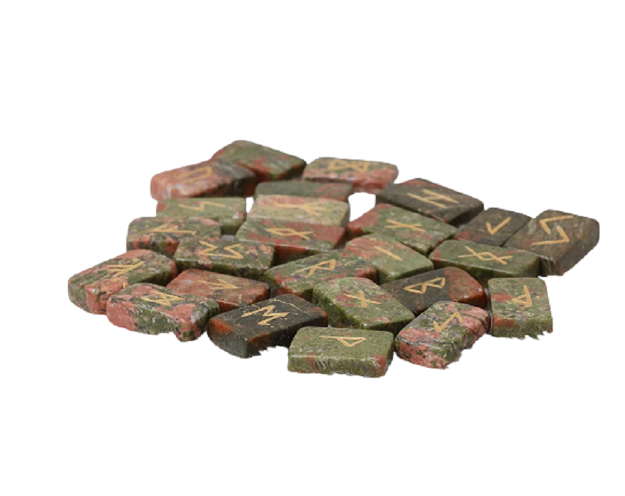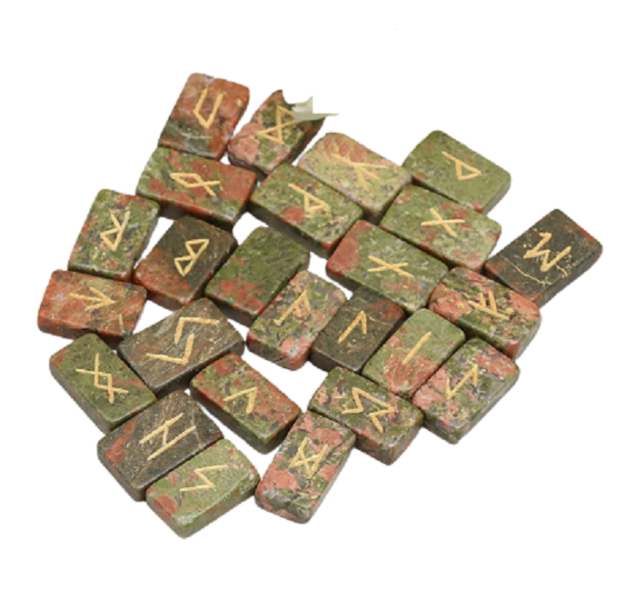 Cubo de Unakita de alta calidad, juego de Runas de cristal caído, piedra de energía Wicca de cuarzo Natural para meditación de intuición, protección vikinga