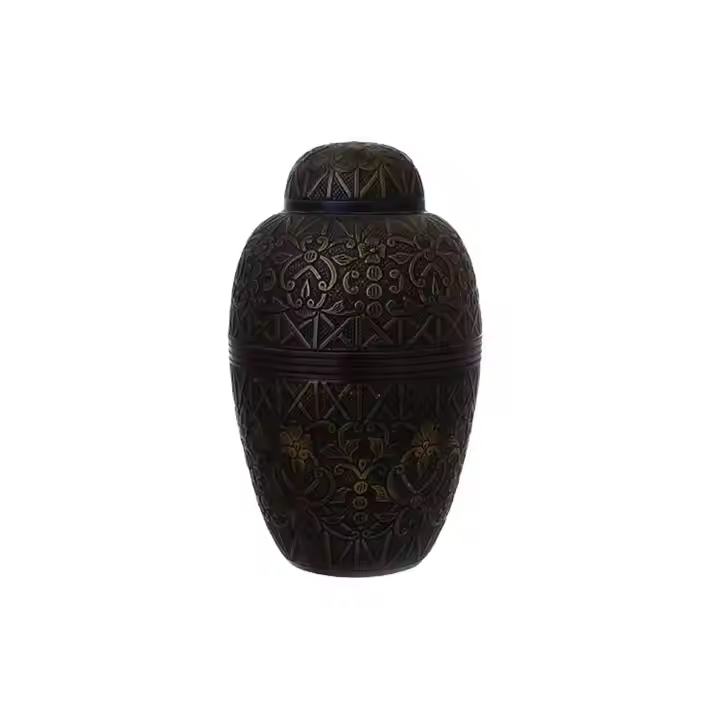 Urna de cremación para adultos con diseño de estampado de flores nuevo hecho a mano único de alta calidad, suministros funerarios de acero/aluminio de Metal verde